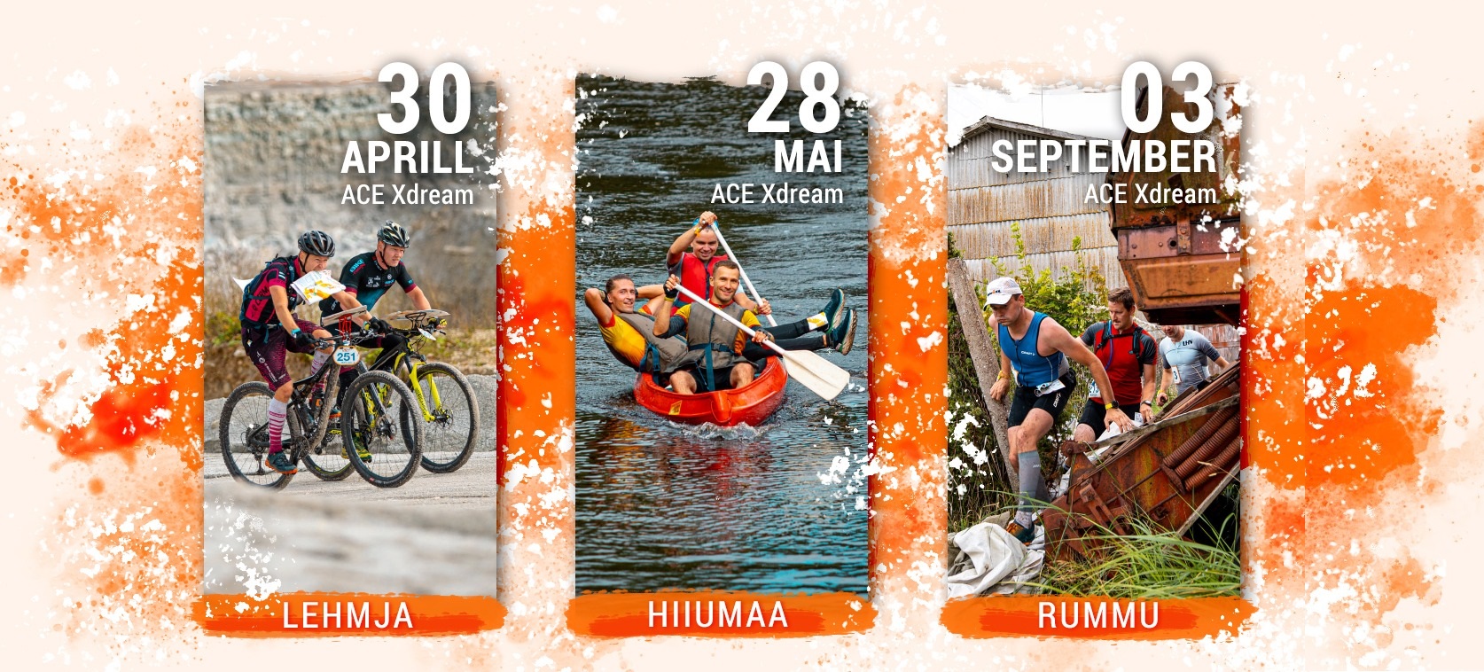 ACE Xdream koosneb sel aastal kolmest osavõistlusest. Kolmeliikmelised võistkonnad liiguvad peamiselt jalgsi, jalgrataste ja kanuudega, läbivad orienteerudes maastikule paigutatud kontrollpunkte ning sooritavad lisaülesanded. Lisaülesannete hulk konkreetsel osavõistlusel sõltub maastiku eripärast ja rajameistri otsusest. Vaata lähemalt: www.xdream.ee/mis-on-xdream